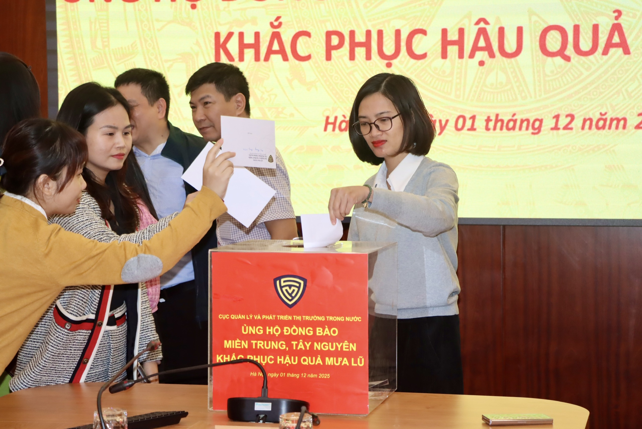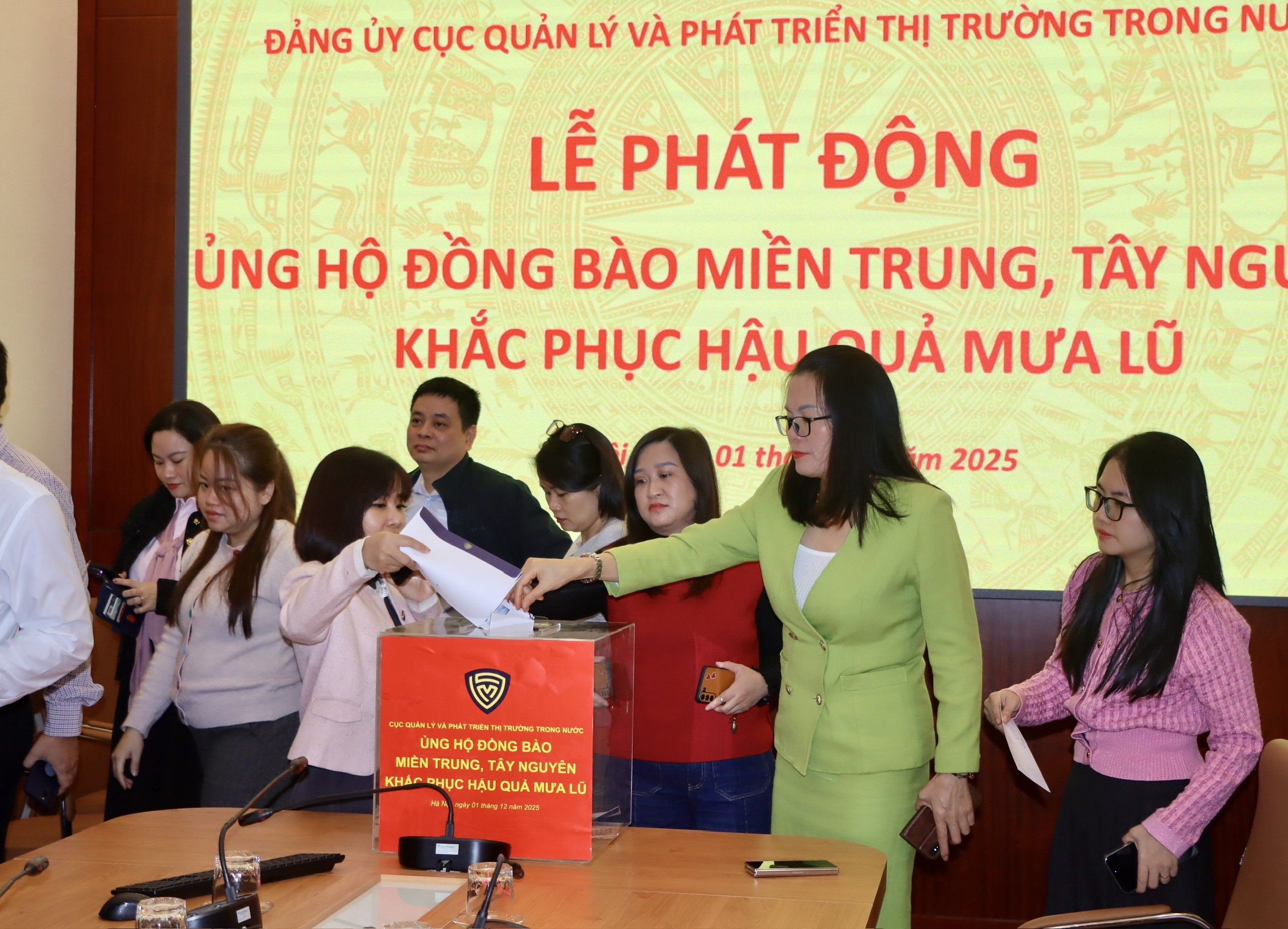 Trong những ngày qua, đồng bào các tỉnh khu vực miền Trung, Tây Nguyên đang phải oằn mình chống chọi với đợt mưa lũ đặc biệt lớn, gây thiệt hại nặng nề về người và tài sản, nhiều hộ gia đình, cá nhân cần được hỗ trợ, giúp đỡ. Với tinh thần “tương thân tương ái”, “lá lành đùm lá rách”, sáng 1/12/2025, Cục Quản lý và Phát triển thị trường trong nước đã phát động ủng hộ đồng bào miền trung, Tây Nguyên bị thiệt hại do mưa lũ gây ra. Cục trưởng Trần Hữu Linh chủ trì.
